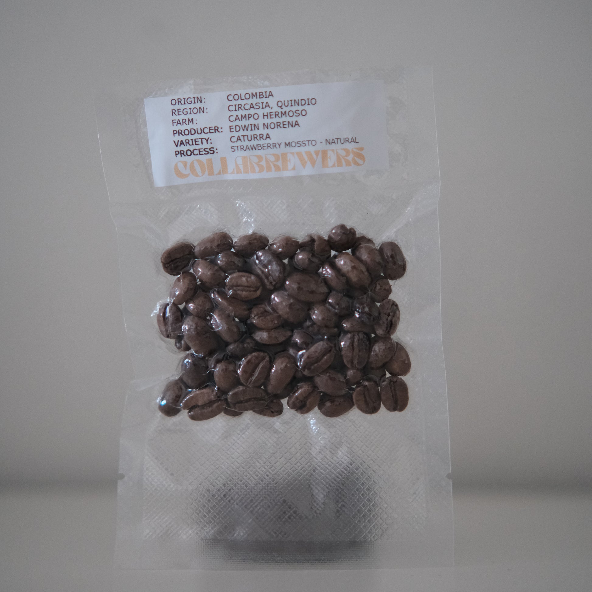 - Caturra, cherries are fermented whole with strawberry extract and mossto. Roasted by Headlands Coffee.